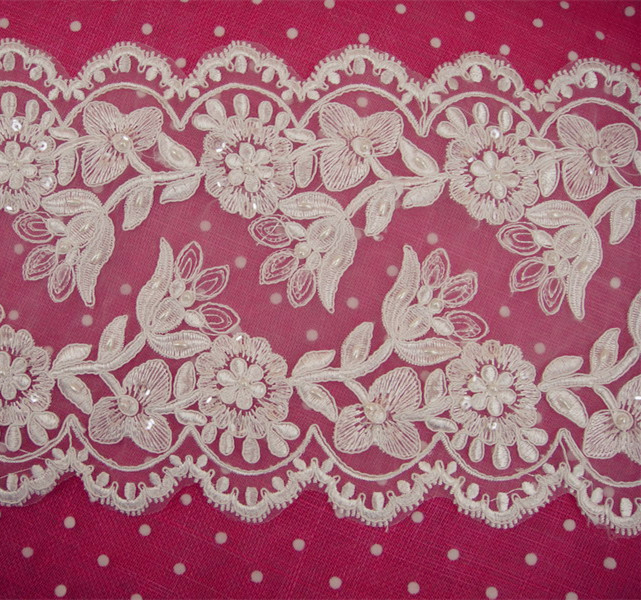 This gorgeous design lace trim has soft hand feel, very stunning and elegant .