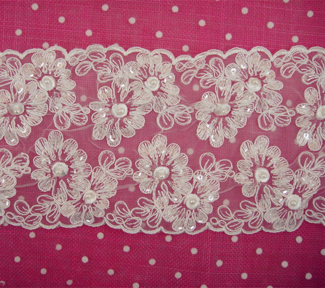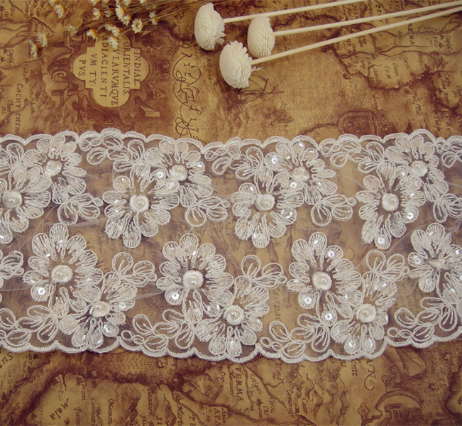 This gorgeous design lace trim has soft hand feel, very stunning and elegant .