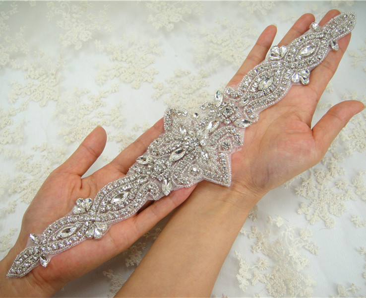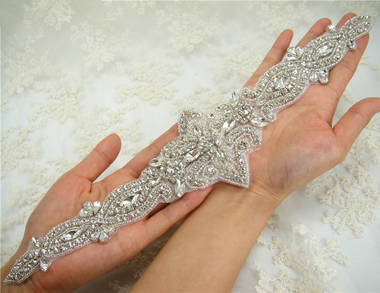 Stunning luxury wedding / bridal applique with high quality crystal rhinestones, beads, rhinestones and beads are all hand sewn .