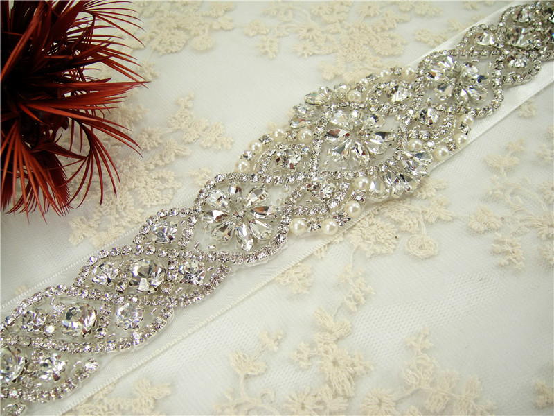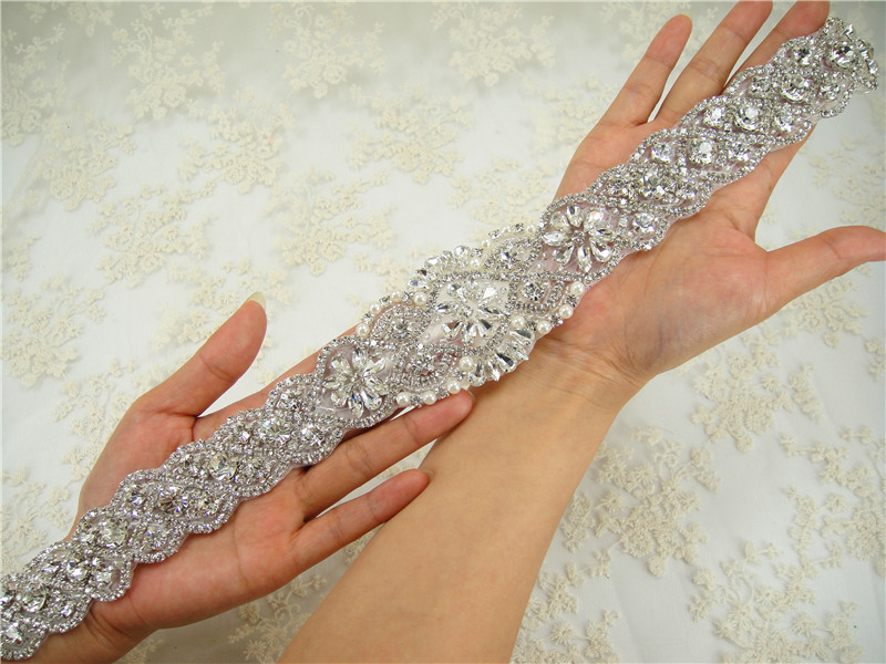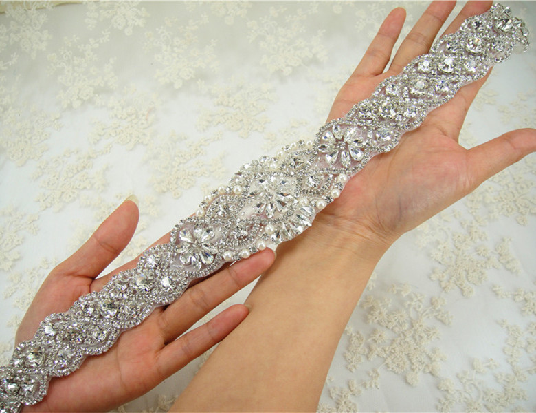 Stunning luxury wedding / bridal applique with high quality crystal rhinestones, beads, rhinestones and beads are all hand sewn .