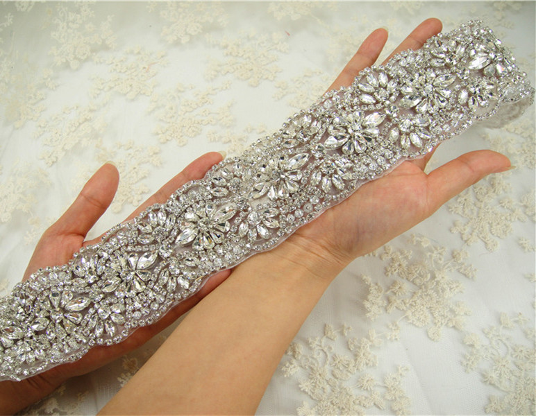 Stunning luxury wedding / bridal applique with high quality crystal rhinestones, ideal for making wedding sash belts, garters, bridal headpieces, decorating the wedding dress, cake decorating and any craft projects you need.