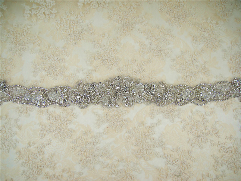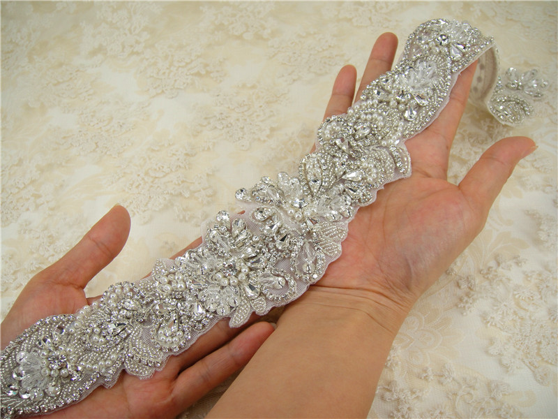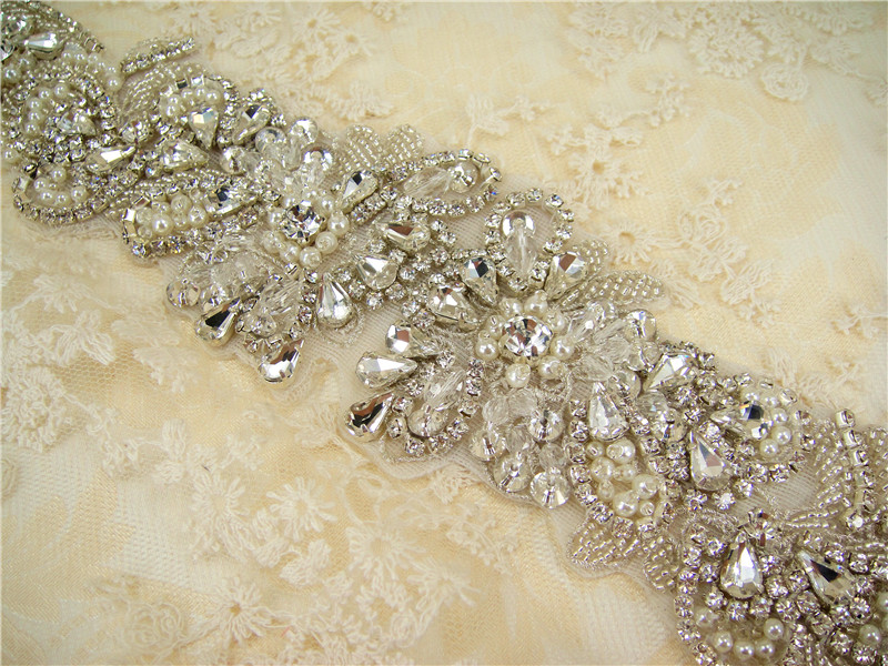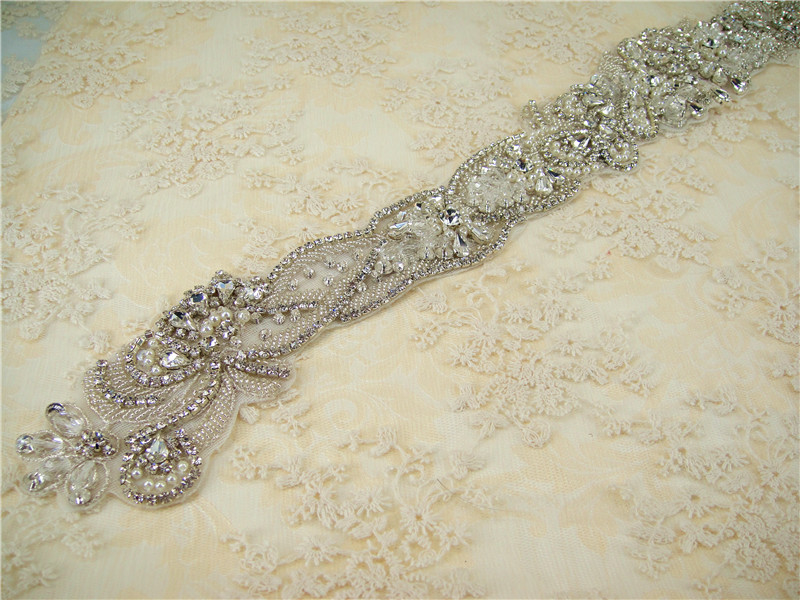Stunning luxury wedding / bridal applique with high quality crystal rhinestones, beads, rhinestones and beads are all hand sewn .