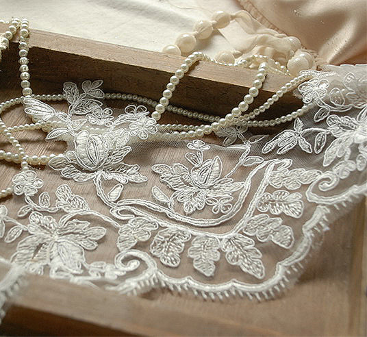 This gorgeous design lace trim has soft hand feel, very stunning and elegant .