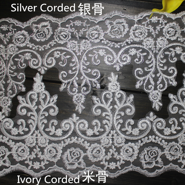 Bridal Lace Embroidered Trim Ribbon Wedding Floral Corded Edging (SLE1080)