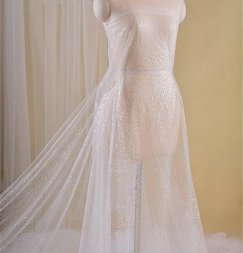 Sequin Wedding Lace Tulle 55" Beaded Bridal Dress DIY Fabric 0.5Y (SFB1085)
