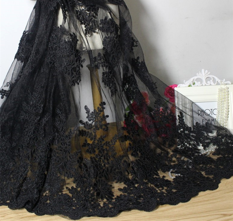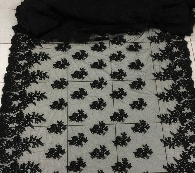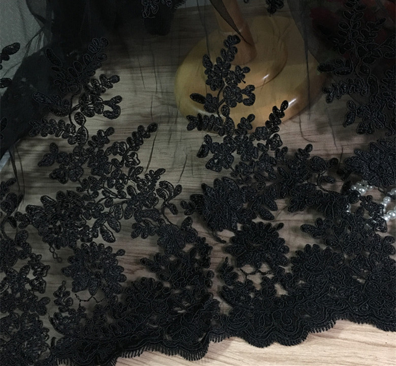 Corded Bridal Gown DIY Lace Fabric Black Floral Dress Lace Trim (SFB1097)