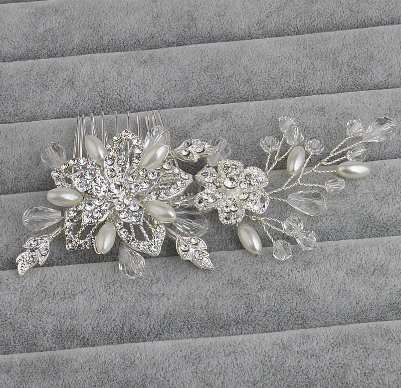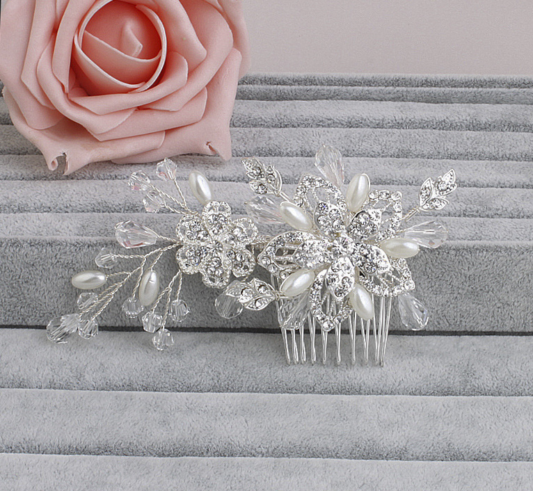 Exquisite Beautiful Bridal Hair Accessories, Pearls Bridal Headpiece, Crystal Hair Comb, made with High Quality Diamante, Pearls and beads.