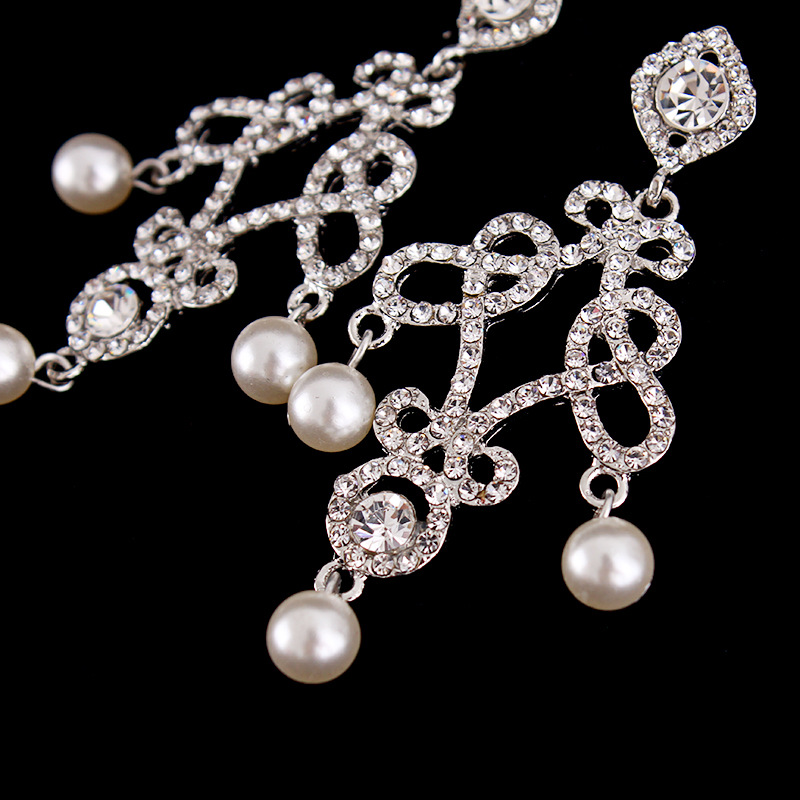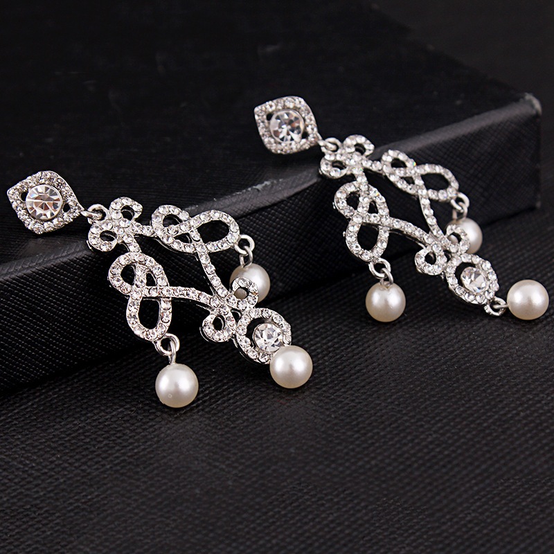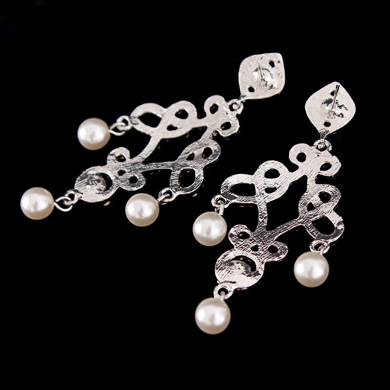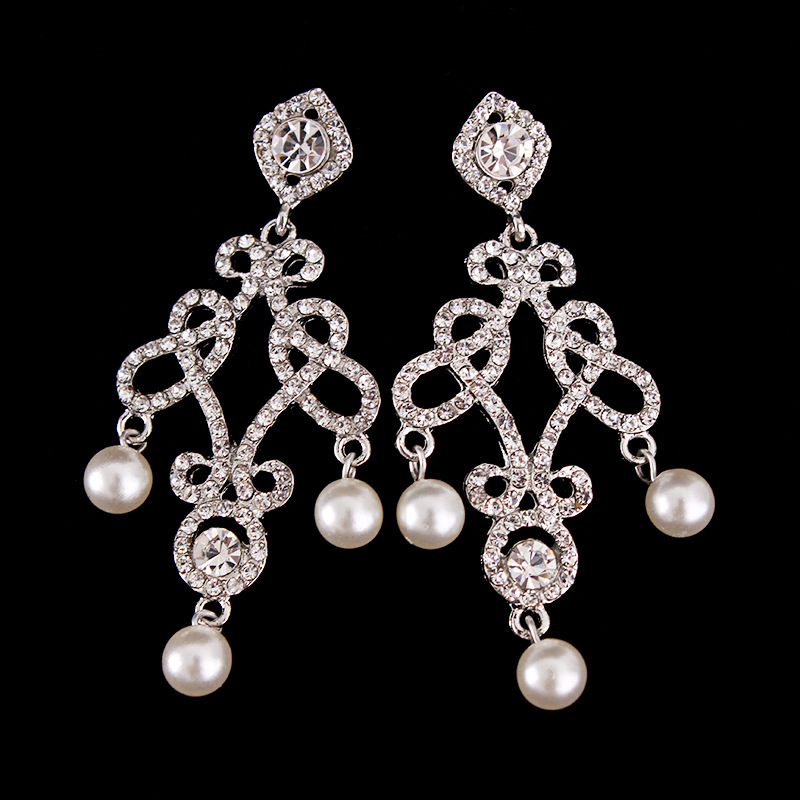 Dramatic,vintage style chandelier components are encrusted with clear crystal stones.The chandeliers hang from silver plated rhinestone posts, suitable for any formal occasions, wedding prom, party, etc.