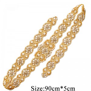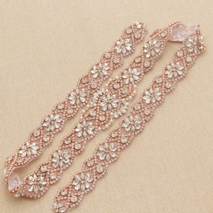 Rose Gold Applique Belts Crystal Beads Rhinestone Sash Trimming (DMA017)