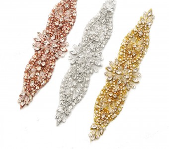 Clear and Sparkling Rhinestone Details with Glue backing ,it can be sewing or hot fixed ,which is perfect for bridal sash, belts, wedding accessories, bridal head piece, garters etc ~
