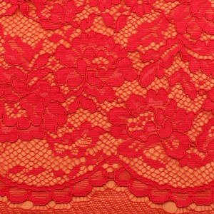 Floral Wedding Gown Fabric Embroidery Corded Bridal Dress DIY Lace (SFB1263-Red)
