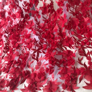 Red 59" Width 3D Flower Embroidery Fabric DIY Wedding Dress (SFB1353-Red)