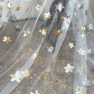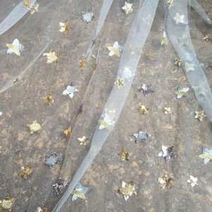 Star Sequin Embroidery Tulle Lace Fabric DIY Wedding Full Dress (SFB1280-Grey)