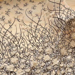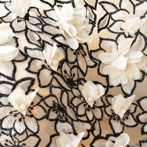 Beautiful 3D Chiffon Flower Embroidery Lace Fabric for Haute Couture Dress (SFB1461)