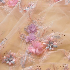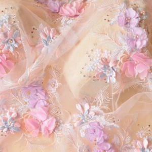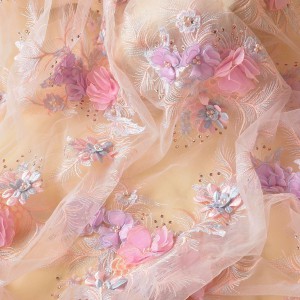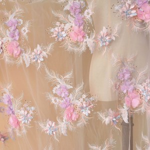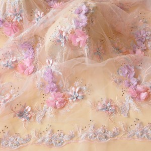 3D Flower Embroidery Lace Fabric DIY Bridal For Wedding Dress (SFB1464-Lilac)