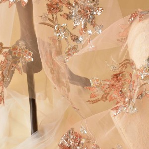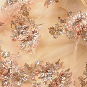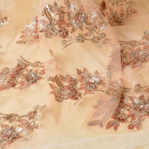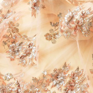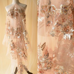 Sequins Flower Embroidery Lace Fabric DIY Bridal For Wedding Dress (SFB1465-Champagne)