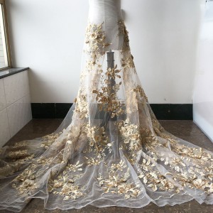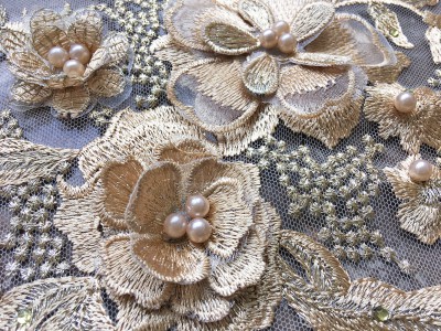 3D Flower Beads Embroidery Lace Fabric Material DIY Dress (SFB1273-Gold)