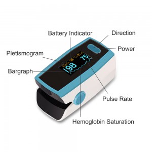 2.Dual Color OLED display,simultaneously displays for testing value and plethysmogram